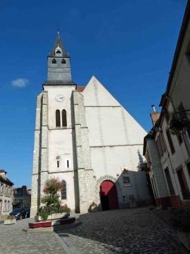 Après avoir été détourné du droit chemin, il nous fallut reprendre la route. Si nous voulions atteindre Clamecy, terme de notre première étape à une heure raisonnable, il nous apparut nécessaire de faire un choix cornélien en arrivant à Joigny : quelle église privilégier ? Saint Jean ou Saint Thibault ? En fait le dédale des petites rues, la multitude des sens uniques et les restrictions de circulation à la sortie des écoles choisirent pour nous. C'est ainsi que nous nous retrouvâmes devant Saint Thibault, ou plutôt derrière...sur l'esplanade du château de type renaissance édifié entre 1569 et 1608. C’est la riche famille jovinienne des Gondi, d’origine italienne et installée dans la région au tout début du XVII° siècle, qui donnera à la bâtisse le nom qu’on lui connaît encore.