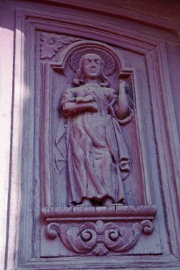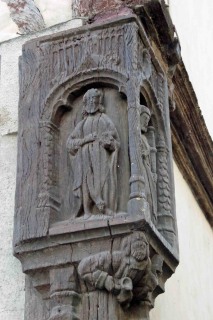 Ce poteau cornier est sculpté, en sa partie supérieure, d'une représentation de Saint Jean-Baptiste,