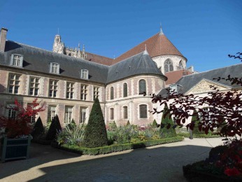 Après avoir erré quelque peu: sens unique et jour de marché obligent nous parvînmes enfin à ranger notre véhicule sur l'arrière de la Cathédrale Sainte-Etienne, rue des Déportés et de la Résistance. Remontant cette rue vers la Cathédrale, notre regard fut attiré par un passage ouvrant sur un jardin à l'arrière du Palais épiscopal. Ce magnifique jardin à la française est l'héritier du jardin particulier de l'archevêque. Il constitue un espace de verdure très apprécié au cœur de la ville.