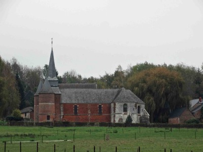 Un petit coup d'oeil sur la retenue sur la "Brune" et direction vers Prisces pour découvrir une autre église fortifiée : Saint-Médard. La construction est du