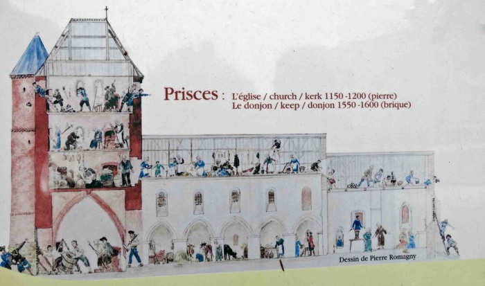 Photographié dans une autre église, ce schéma montre le rôle refuge de l'église et le fonctionnement des diverses défenses.