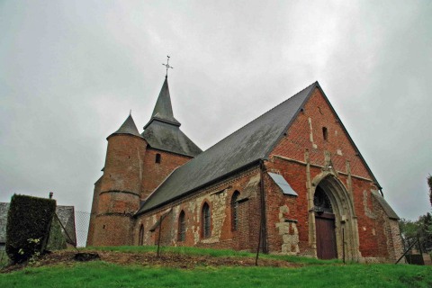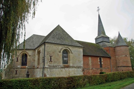 Après Marle, bourg important, une petite cité, Rogny, qui possède l'église Saint-Event, belle église fortifiée :