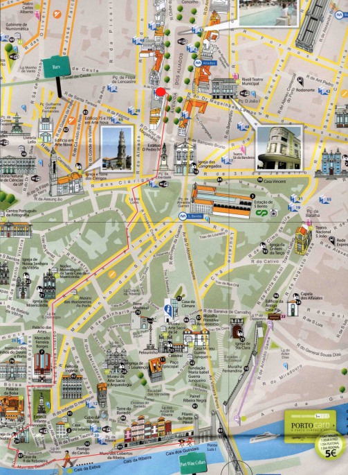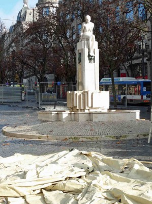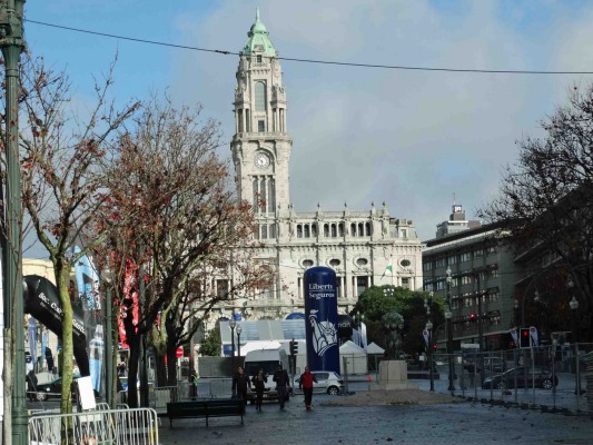 Arrivé à l'hôtel avec l'intention de se remettre d'un départ très matinal, nous dûmes changer de plan devant l'impossibilité de disposer de notre chambre avant 14H. Changement de programme donc : petit tour à la bagagerie, extraction de tout le nécessaire pour partir en ballade (materiel photo, guides et plan), repérage sur le plan aimablement donné à l'aéroport et en route pour une première escapade. Une fois dehors, et prenant possession de notre environnement (à défaut de notre chambre) nous constatâmes que l'Avenida dos Aliados présentait un aspect quelque peu perturbé par des barrières métalliques, des structures gonflantes, et autre objets divers.