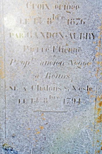 Avant d'entrer dans Chenay, une croix de calvaire attira notre attention. Petit arrêt et découverte d'une inscription qui piqua notre curiosité. Par la même occasion, l'observation des vignes environnantes nous fit penser que les champenois pourraient peut-être faire aussi des vendanges tardives.